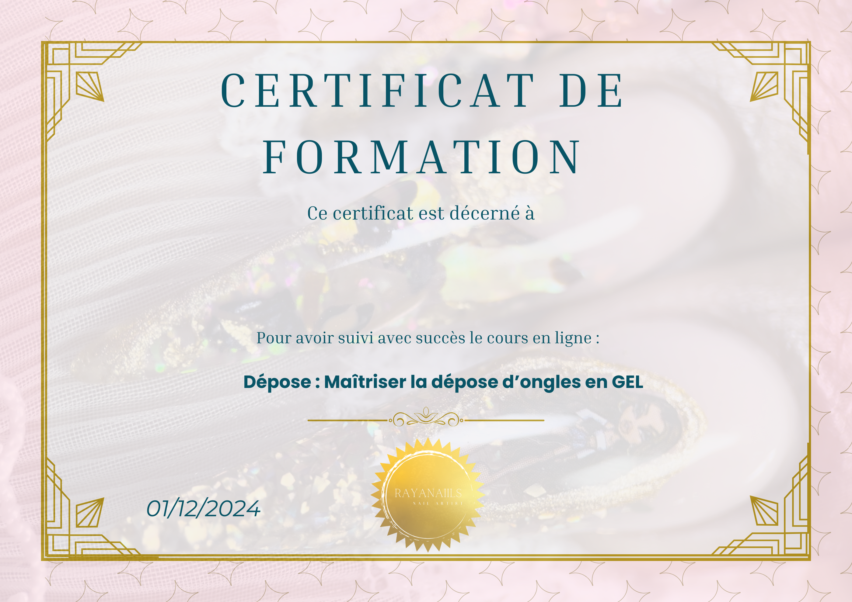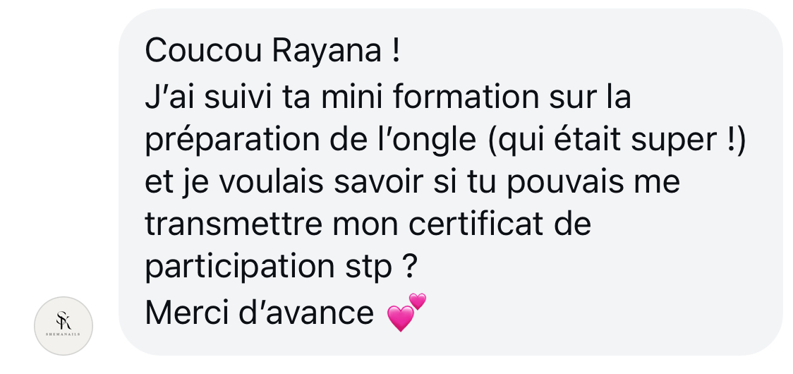 Après chaque module complété, vous recevez un certificat de formation personnalisé accompagné de toutes mes félicitations pour votre progression.